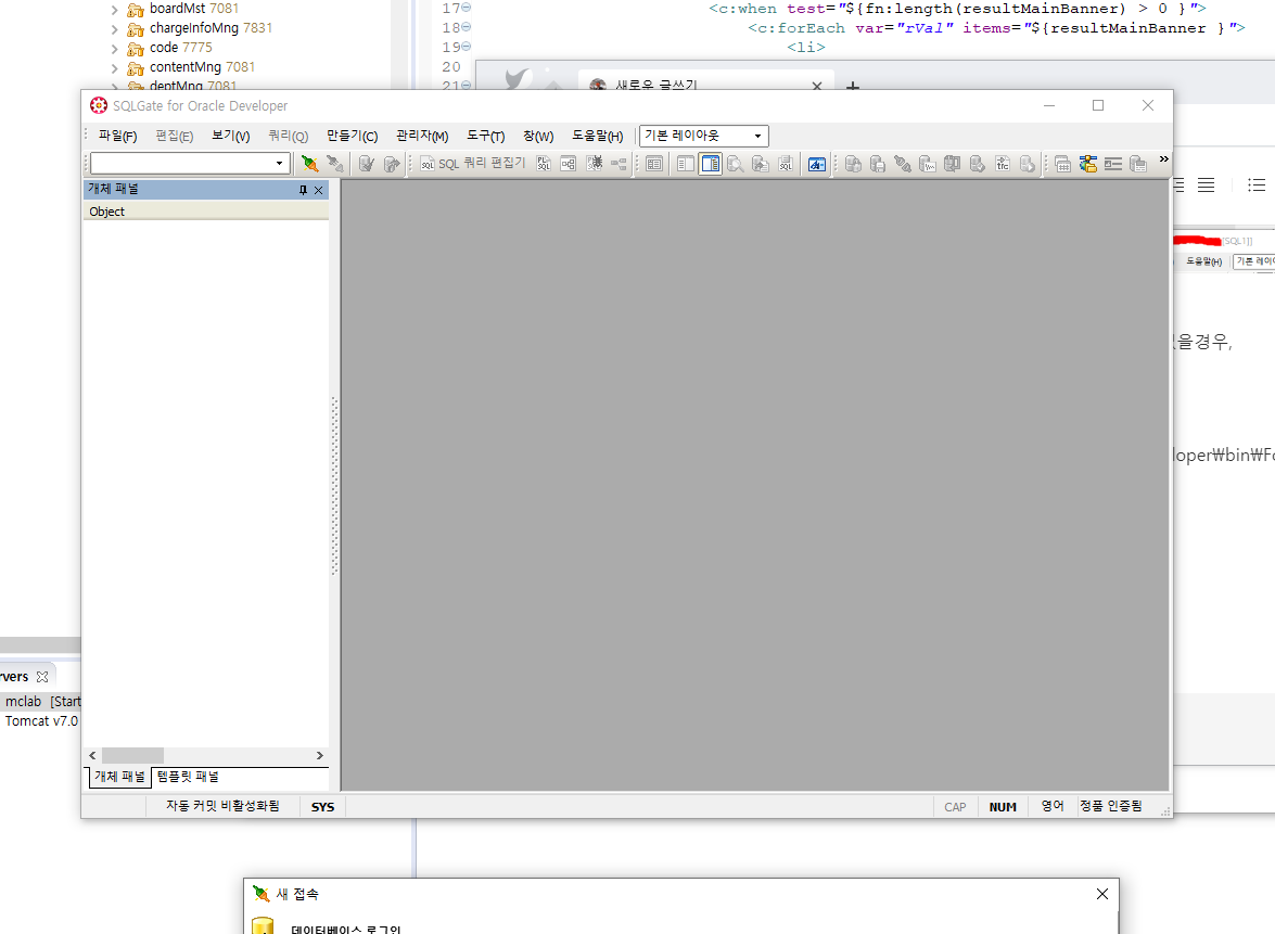위와 같이 하단에 sqlgate 창만 열리고 아무것도 클릭할 수 없을경우,