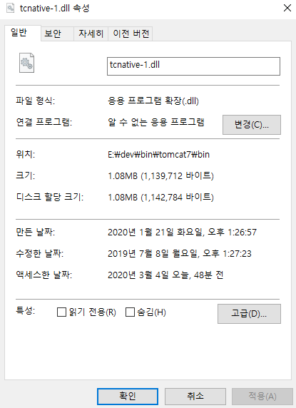 tcnative-1.dll 파일을 보면 어디에도 해당 파일의 비트(bit)는 나와 있지않다.