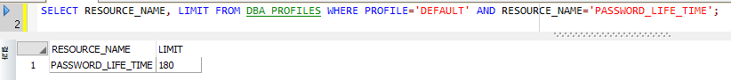ALTER PROFILE DEFAULT LIMIT PASSWORD_LIFE_TIME 360;