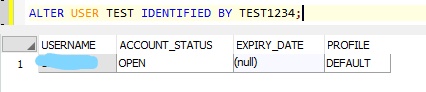 위 명령어로 변경하게 되면 기존에 ACCOUNT_STATUS에 EXPIRED (만료됨)이라고 되어있던 것이 OPEN으로 바뀐다.